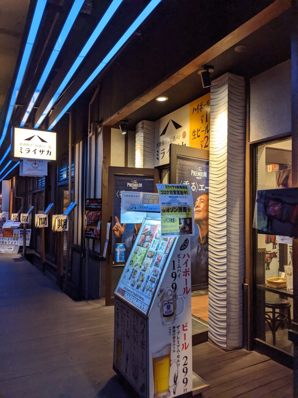 JR市川駅(南口)から歩いて数分のところにある居酒屋のチェーン店です。金曜日の夜に行きましたが、コロナ禍と言うこともあり、店内は空いていました。ジムビームハイボールが199円、中生(プレミアム・モルツ)が299円と低価格で飲むことができます。料理もリーズナブルな値段で良かったです。