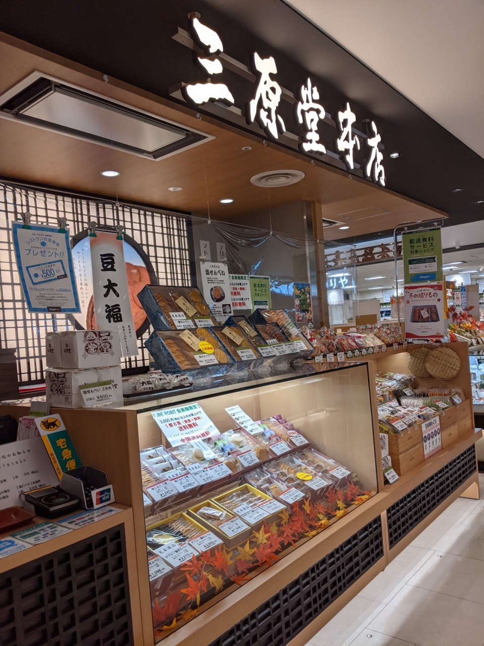 JR市川駅(改札外)の商業施設(シャポー市川)にある和菓子屋さんです。駅ビルやショッピングセンターでは良く見かけるお店です。おはぎ、どら焼き、みたらし団子などを買うことができますが、季節限定の「りんごどら焼き」はおみやげなどにもお手頃なのでお薦めです。