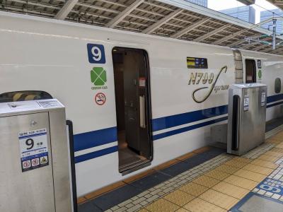 東海道新幹線の車両の中でも最新型車両のN700S(Supreme)に乗車しました。旧型車両とは異なり、全席にモバイルコンセントが搭載されていたので、窓側の席でなくとも乗車中にスマホの充電ができて便利でした。