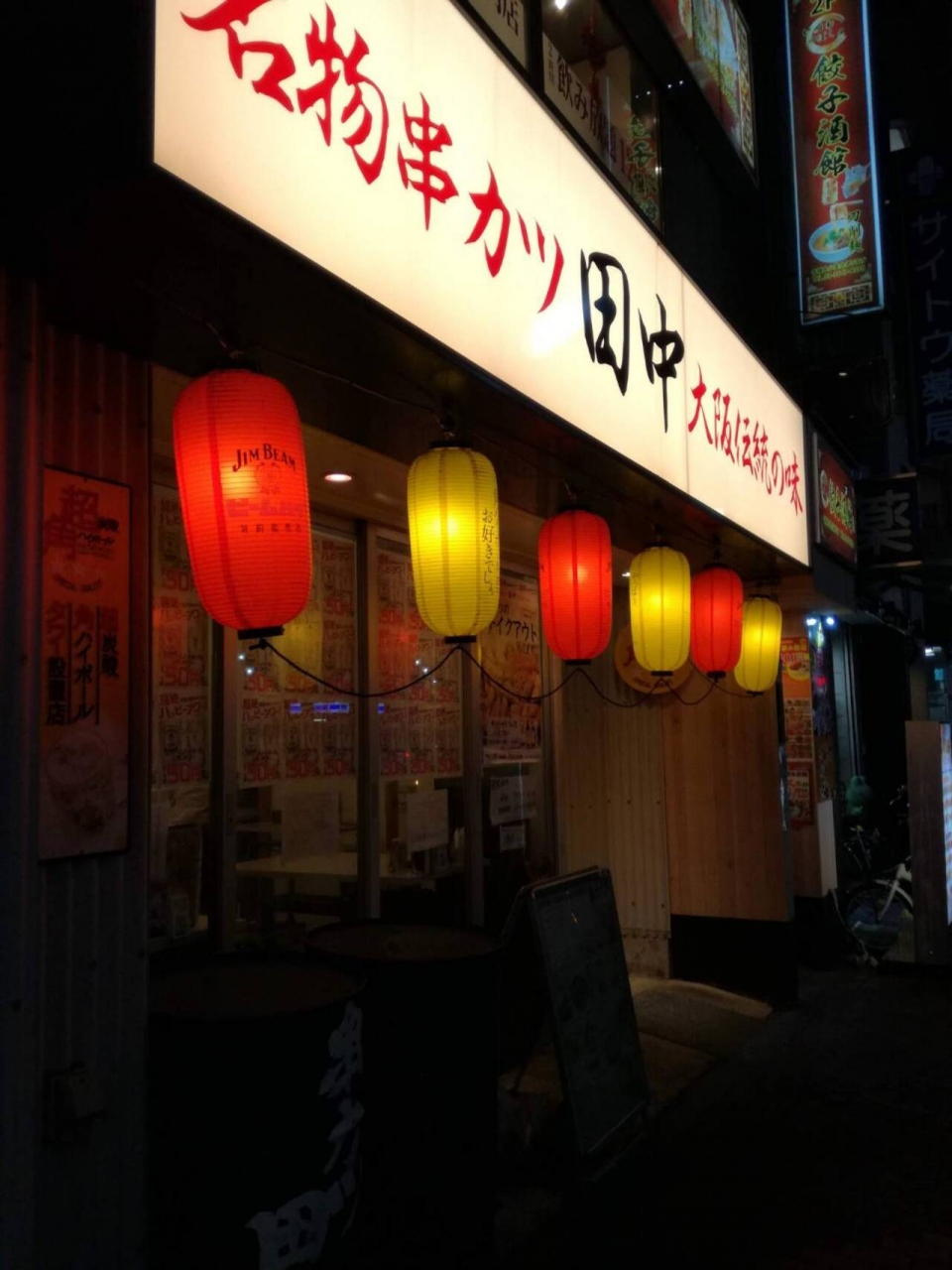 門前仲町にある「串カツ田中」です。牛肉、豚肉、玉ねぎ、アスパラ、ホタテなどの串カツは、1本100円から200円とお手頃な値段で食べることができます。どの串カツも揚げたてで美味しかったです。また、たこ焼きは自分で作るので楽しむことができました。