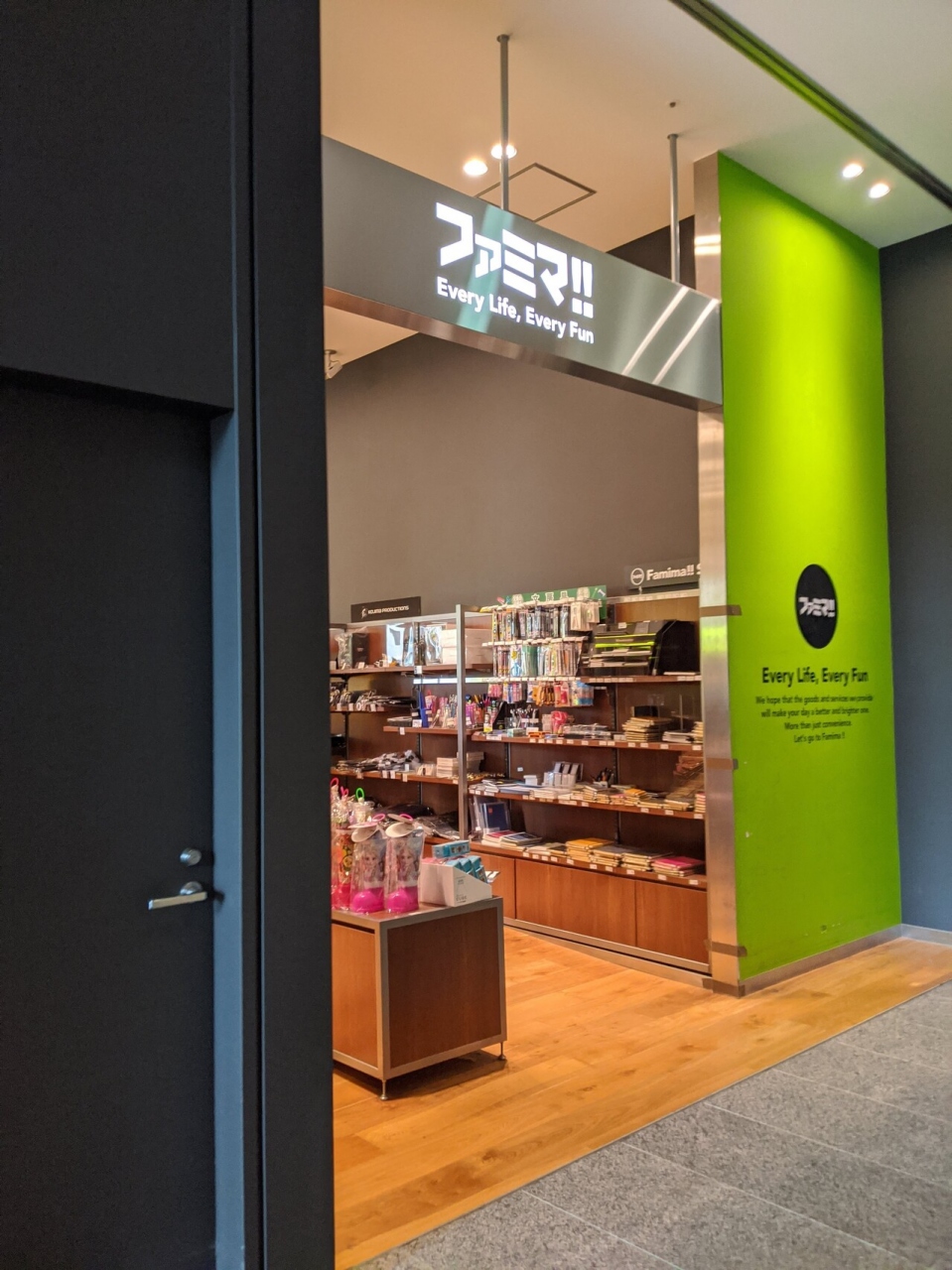 品川シーズンテラスにあるファミマです。オフィスビル内にあり、店内は広く、開放感がありました。お弁当やパン、ドリンクなど普通のファミマで売っている商品以外にキャラクター商品なども売っていました。ランチタイムになるとイートインスペースは、ビル内で働く人たちで混雑していました。