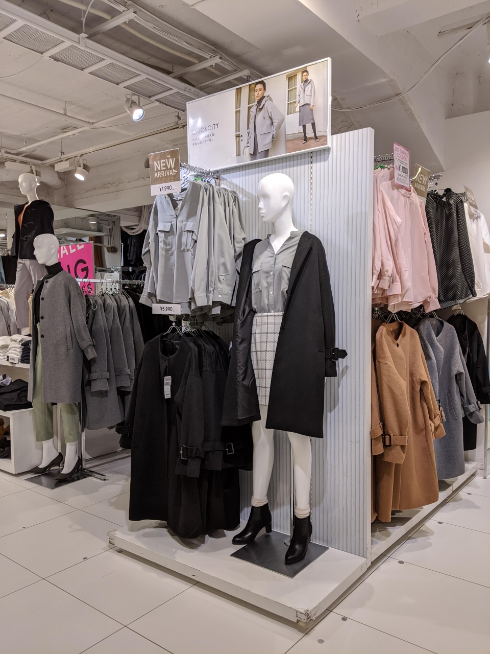 新宿駅(東口)から歩いて数分、ビックカメラとユニクロがコラボしたビックロ内にあるGUです。お手頃な値段でセーターやコートなどを買うことができます。大型店なので品揃えも豊富。冬物衣料を買うならおすすめのお店です。