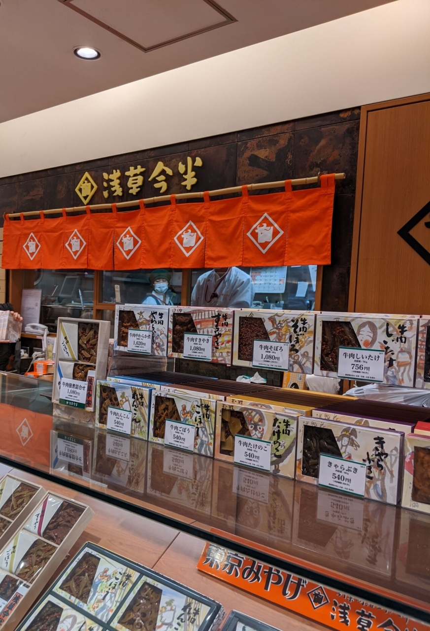 東京駅改札内のグランスタにある「浅草今半」です。老舗すき焼き店のテイクアウト専門店です。すき焼き弁当や牛肉弁当は値段は高めですが美味しいのでプチ贅沢には最適です。また、牛肉の佃煮やそぼろなどをおみやげなどに買って帰るのもおすすめです。