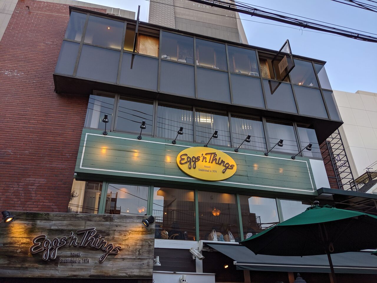 表参道から細い通りを少し入ったところにあるエッグスシングスです。人気店と言うこともあり、入店までかなりの時間待ちましたが、ふわふわとしたパンケーキは、生クリームやフルーツたっぷりでボリュームもあって美味しかったです。