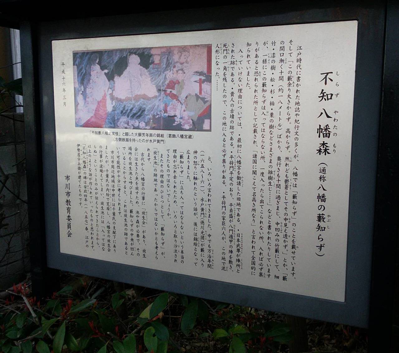 JR本八幡駅から歩くこと5分~6分位、国道14号線沿いにありました。藪に一度入ったら出てこれない、藪に入ったら必ず祟りがあるなどの伝説がある藪です。特に、見ごたえがある藪でもなかったですが、伝説を知ると不気味な感じがする藪でした。