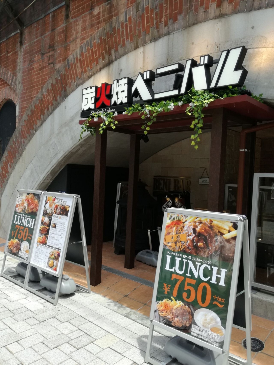 新橋駅から徒歩数分、JR線の高架下にある最近オープンした新しいお店です。ランチタイムならお手頃な値段でボリュームたっぷりの食事をすることができます。炭焼きハンバーグは、香ばしく、ジューシーで美味しかったです。ちなみに、値段は異なりますが、ハンバーグはサイズを選ぶことができます。