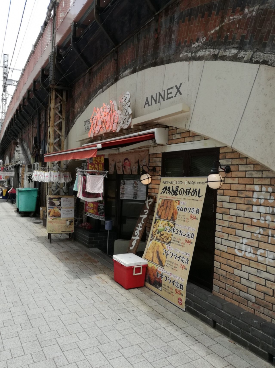 新橋駅から徒歩数分、JR線の高架下にあります。ランチタイムに行きましたが、カキフライ定食やアジフライ定食などを食べることができます。カキフライ定食を食べましたが、大粒でクリーミーな牡蠣は美味しかったです。焼き牡蠣食べ放題メニューもあるので、次は食べ放題に行きたいです。