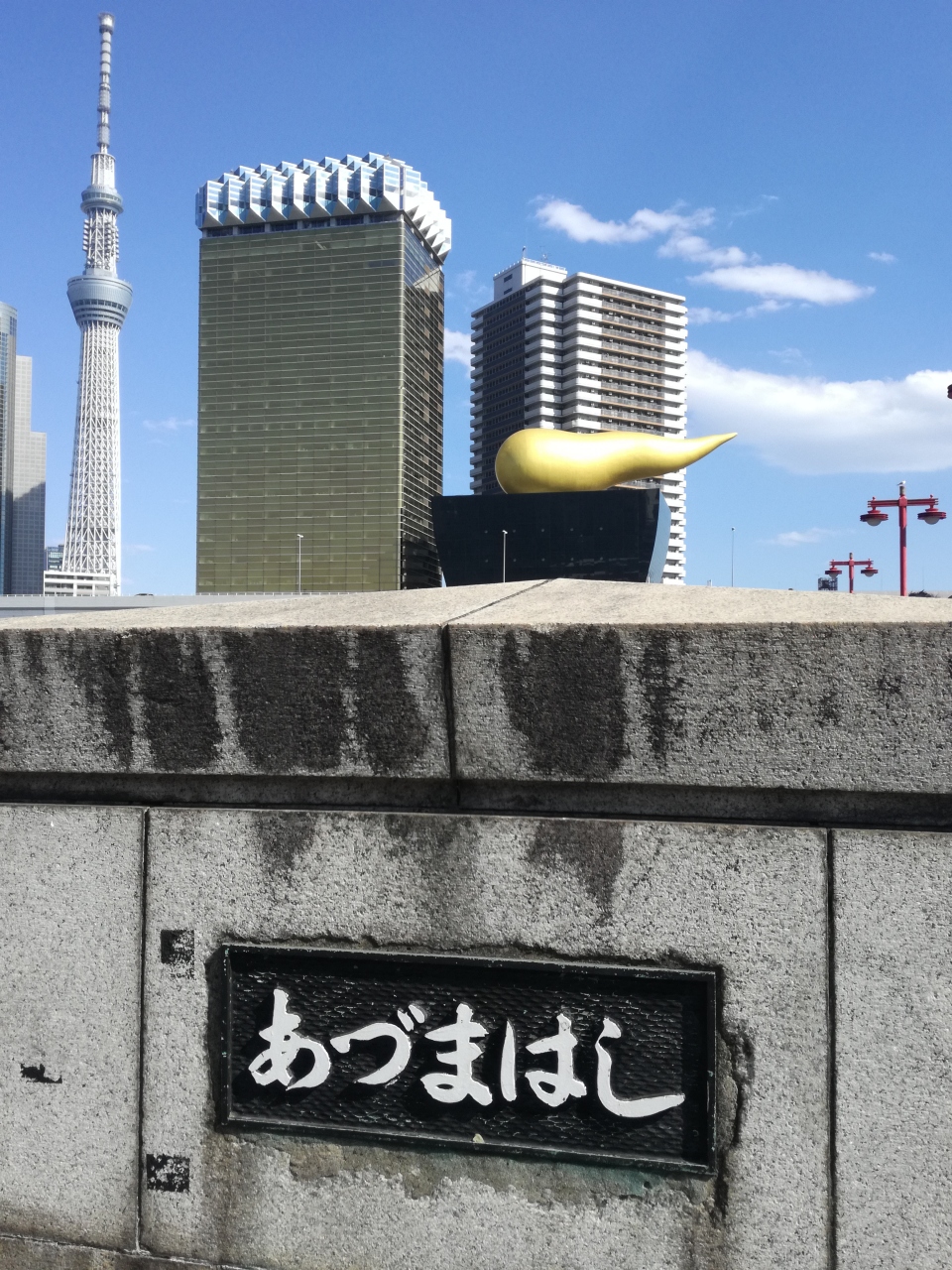 東京の人気観光スポット浅草とは、隅田川を挟んで反対側の対岸にあります。吾妻橋を渡ったところにあるビルの上には、金色に輝く大きなオブジェがあります。このオブジェは、「聖火台の灯」を表しているようですが、存在感もあり、中々の見ごたえがあって良かったです。