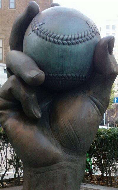 学士会館前にある野球のボールを握る大きな手のオブジェです。知らなかったのですが、この場所が日本での野球発祥地らしいです。このオブジェは存在感と見ごたえかあるので興味がある人は立ち寄ってみると良いです。