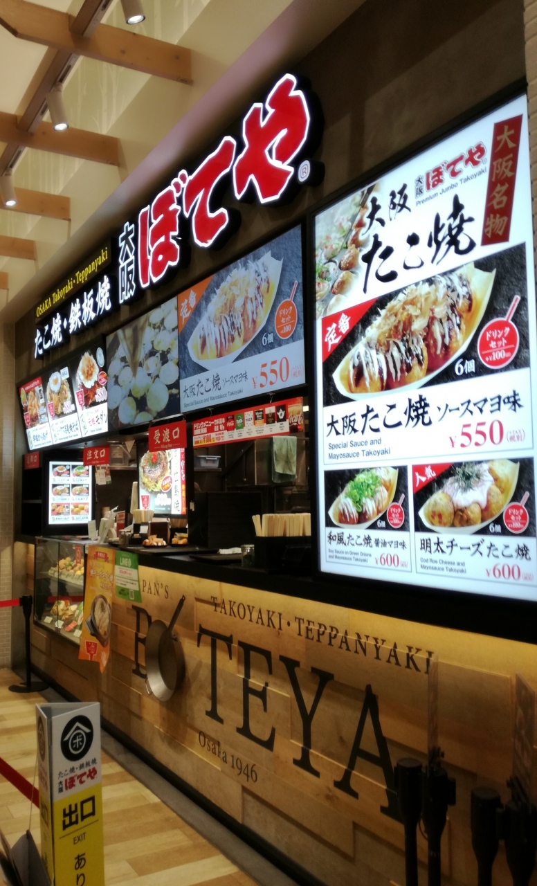 アクアシティお台場のフードコートにあるお店のひとつです。たこ焼きや焼きそばなどを食べることができます。たこ焼きは、定番のソース&マヨネーズや和風の醤油&マヨネーズなどがあります。焼きたてのたこ焼きはアツアツ、とろとろで美味しかったです。
