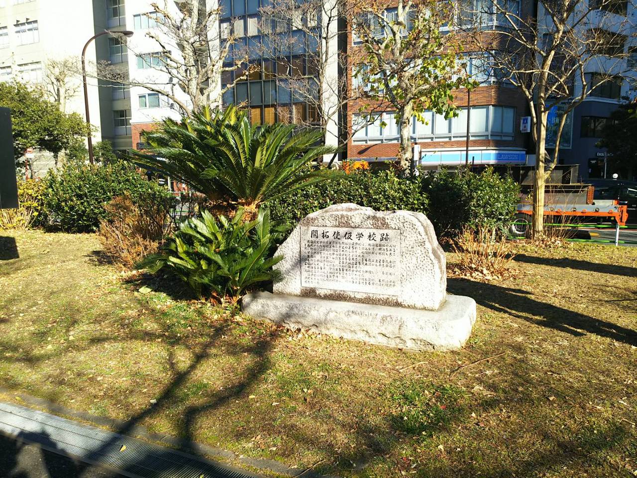 開拓使仮学校跡の石碑は、地下鉄御成門駅から直ぐの芝公園内にありました。北海道開拓使の育成を目的に設立した学校で、北海道農学校(現在の北海道大学)の前身があったようです。現在は、石碑のみで当時の面影は全くありませんでしたが、北海道大学のルーツが東京にあることを知り驚きました。