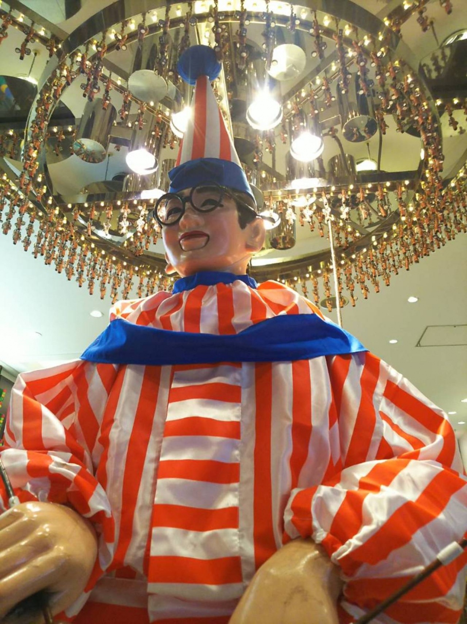 くいだおれの街「道頓堀」にあります。以前は、飲食店がありましたが、既に閉店しており、現在は人形だけです。かわいい人形では決してありませんが大阪、道頓堀のシンボル的な存在なので道頓堀に行ったら立ち寄ってみるのと良いです。