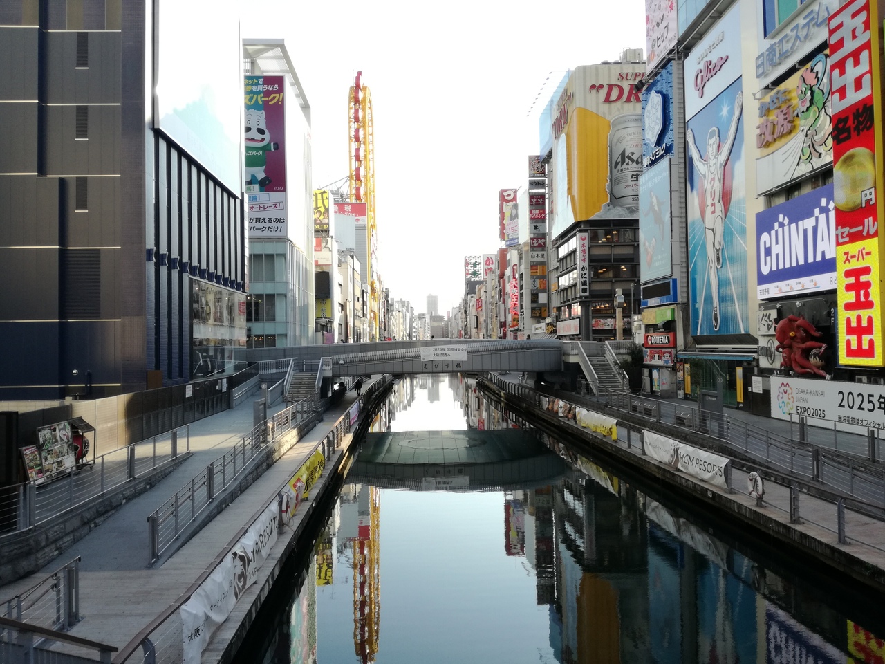 大阪の観光名所のひとつで、大阪市内の中心地を流れる道頓堀川に架かる橋です。阪神タイガースの優勝やサッカー日本代表が勝利したときなどに橋の上から飛び込むことでも有名な橋です。また、グリコの大きな看板が直ぐ脇にあるので記念写真の撮影スポットとしても人気の場所なので、ミナミに行ったら立ち寄ってみてくたさい