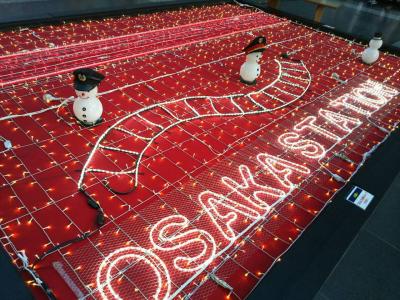 大阪駅構内の大阪ステーションシティの南北をつなぐ広場です。広場には、オープンカフェもあるので休憩などには最適です。また、この季節は、たくさんのLEDライトで施された「Twilight Fantasy」が開催されているのでとても綺麗です。