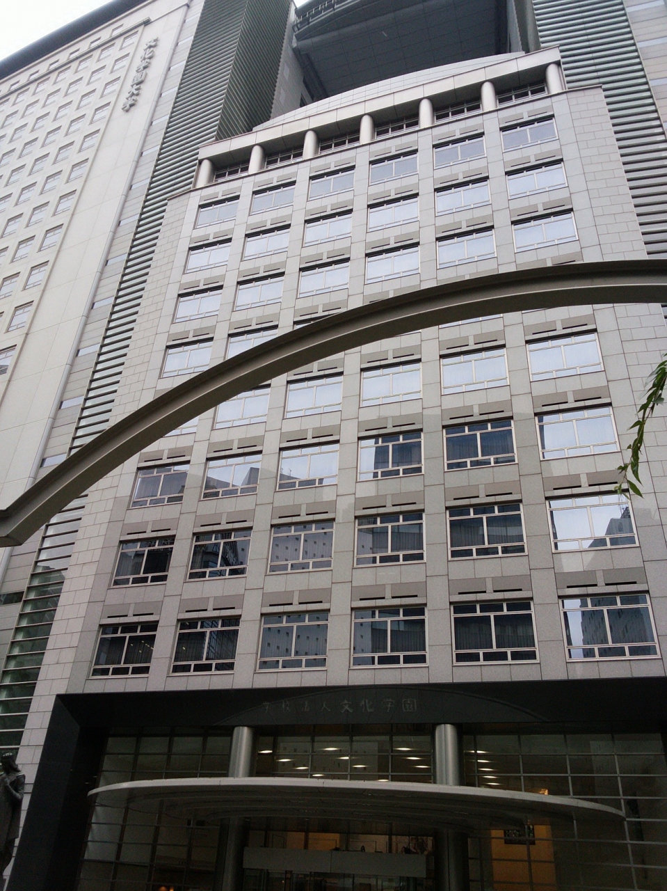 新宿駅(南口)から甲州街道(国道20号)沿いを初台方面に歩くこと10分程の場所にあります。キャンパスは、いくつかの高層ビルからなっており、文化学園大学、文化服装学院、文化ファッション大学院大学、文化外国語専門学校の4校があります。世界的に有名なファッションデザイナー(コシノジュンコなど)の出身校でもあります。キャンパス周辺には、奇抜なファッションや個性的なファッションの学生たちもたくさんいましたが、この中からいつか有名なデザイナーが生まれるかもしれないと思うと創造が膨らみます。