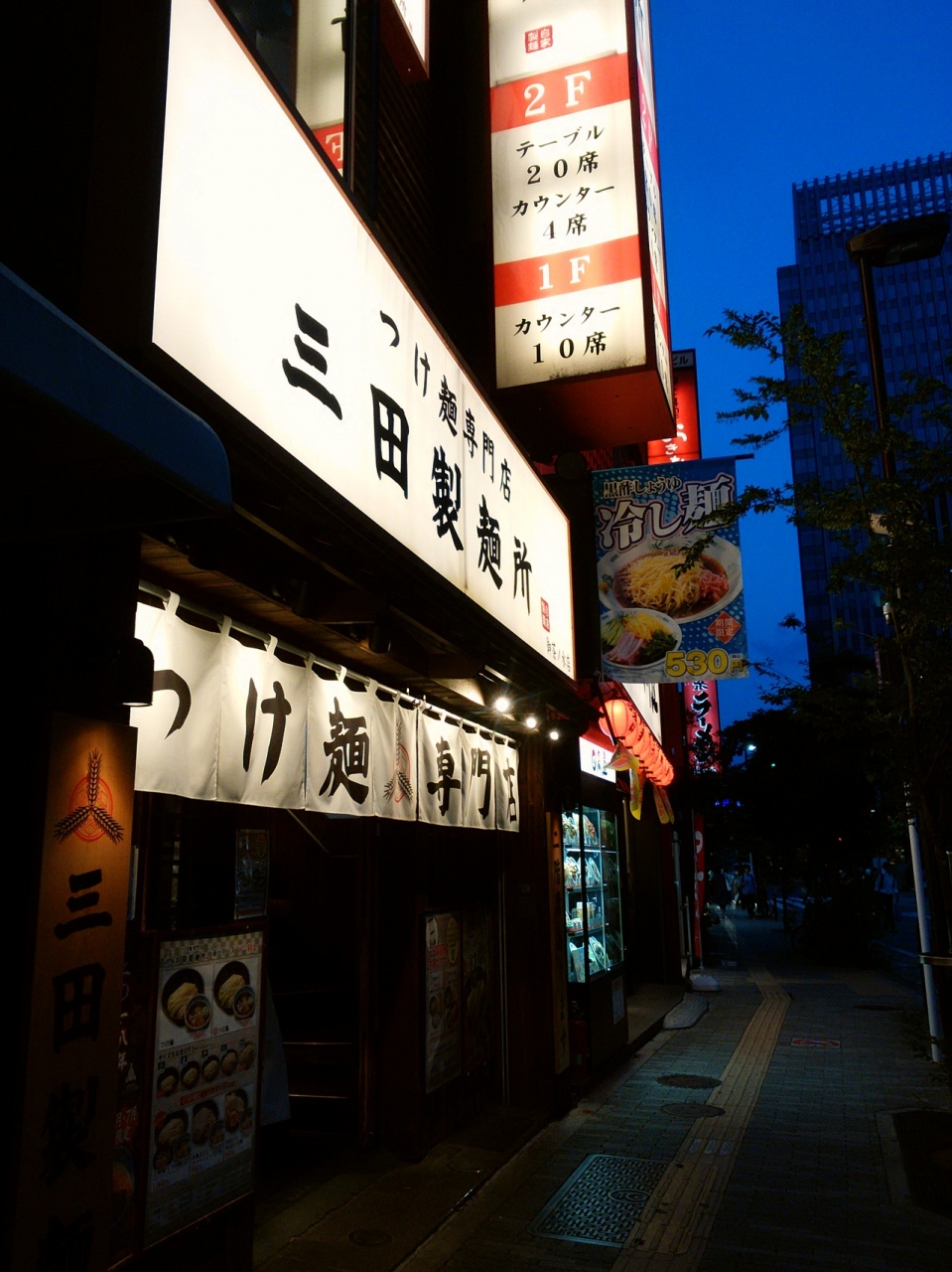 JR御茶ノ水駅からすぐのところにある三田製麺所です。つけめんが美味しいお店で時間帯によっては行列ができるほどです。同料金で大盛りを食べることができますが、太麺なので大盛りはかなりボリュームがあります。つけめんを食べるならおすすめのお店です。