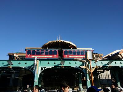 アメリカンウォーターフロントとポートディスカバリー間を結ぶ電動式トロリーです。待ち時間が5分程だったので乗車して移動しました。所要時間は2~3分程と短かったですが、車内からは、S.Sコロンビア号やメディテレーニアンハーバーなどを眺めながら移動することができるので良かったです。また、パーク内を歩き疲れたときの移動にも楽々で便利です。