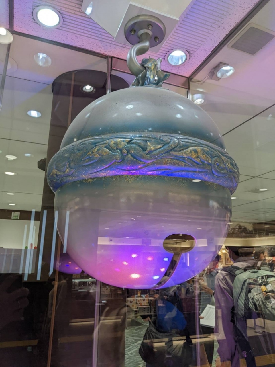 JR 東京駅 (地下中央通路/銀の鈴広場)に 「銀の鈴」はありました。東京駅の待ち合わせ場所としても有名な「銀の鈴」は、元々大きな鈴なので、それだけでも存在感がありましたが、ガラスのケース内に展示されており、ライトアップもされているので、かなりの存在感がありました。