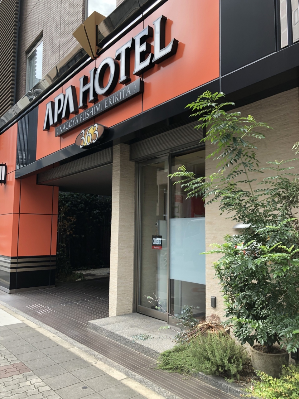 地下鉄東山線「伏見駅」から歩いて5分位のところにあるアパホテルです。 2022年3月にオープンしたばかりのホテルなので、ホテルの設備などは、どれも新しく気持ちよく過ごすことができました。名古屋最大の繁華街でもある栄や錦までも徒歩圏内なので、滞在中の食事なども便利で良かったです。