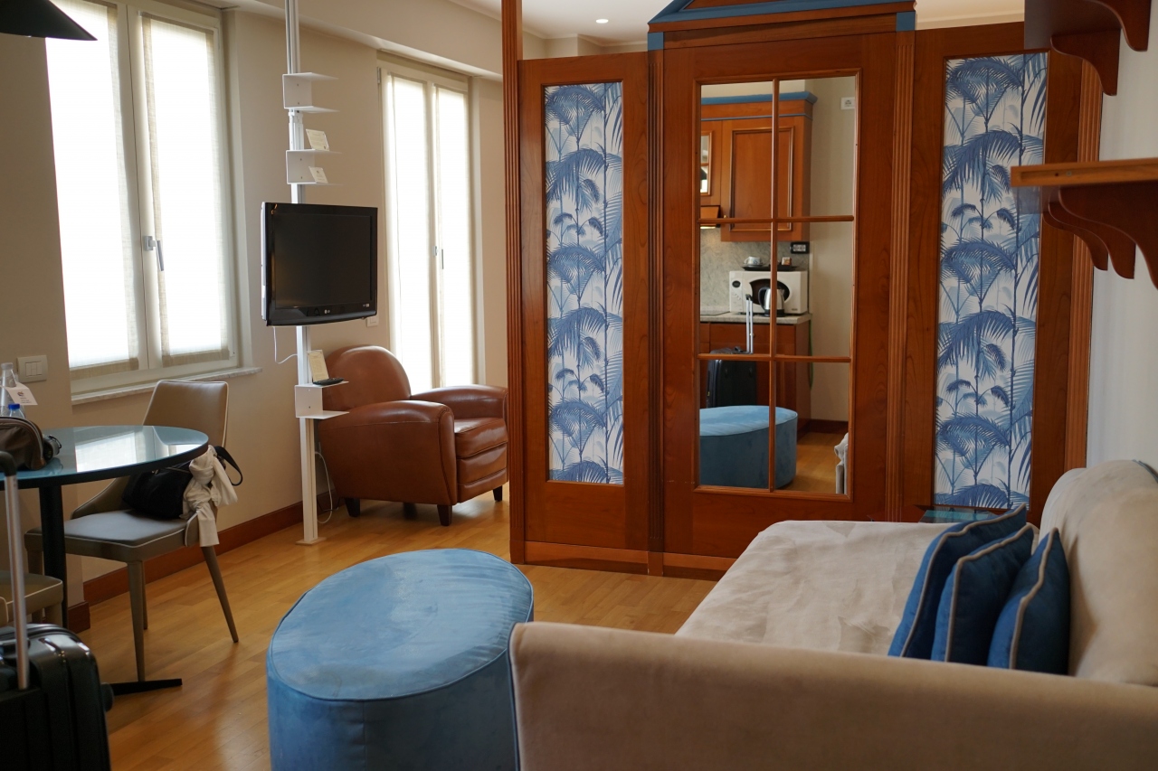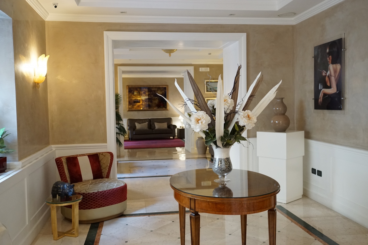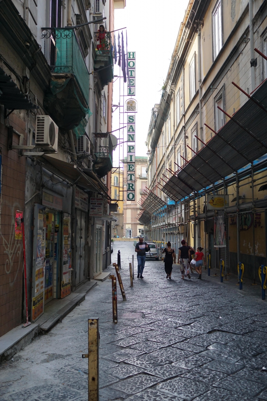 ナポリ中央駅から歩いて7~8分と便利なところですが、周辺は汚らしく、ホームレスなどが怪しげな人がうろついています。その一方、ホテルは清潔でロビーや客室のインテリアも素晴らしく、フロントの対応も感じが良くまさに掃き溜めに鶴という印象でした。
