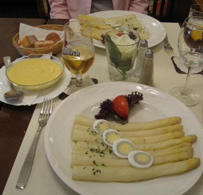 持ってきたメニューにはアスパラガスは載っていませんで、季節の特別メニューのようでした。大きなホワイトアスパラガスを特製マヨネーズでいただいて、大満足でした。- 旅行時期