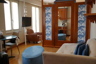 ミラノ中央駅近くのつもりで選びましたが、駅の出口からは少し距離がありました。レジデンシャルホテルなので、食事はなくキッチンがついています。フロントは親切です。しかし、フロントに用がなければ、声をかけるわずらわしさも無く、自分の家のような使い方(ロビーも勝手にコーヒー淹れたりできるようで)が可能でした。