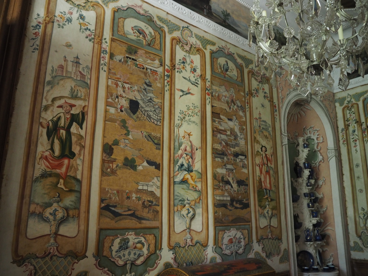 グラーツ駅前にある入り口から階段を降りた地下にあるトラム乗り場からお城にアクセスできます。城のすぐ入り口にあるチケット売り場は庭園のみ。城の内部に入るためには、城の1Fにあるお土産モノなどのコーナーでガイドツアーのチケットを買います。英語のガイドツアーは1時間に1回です。ツアーが始まるまでに庭園を見たり、先に城の中にある博物館に入ってもいいかも。博物館はツアーの内容に入っていません。庭園にはクジャクが放し飼いにされ、花がキレイです。ですので、春に行くのがお勧めです。大阪城下の屏風絵は中国風の絵と交互に並んだ壁紙のようになっていますが、観る価値が充分にあるものだと思いました。意外と小さい部屋にあります。快晴の日に行ったので良く見れましたので、晴れた日に行かれたほうがいいかもしれません。2017年4月当時は写真撮影可でしたが、現在は不可になっているようです。