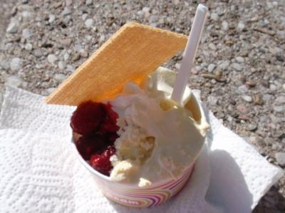 特別な感じの名前だけど、いつも同じ味です。バニラアイスクリームとクロテッドクリーム、それにラズベリーソースがかかってます。