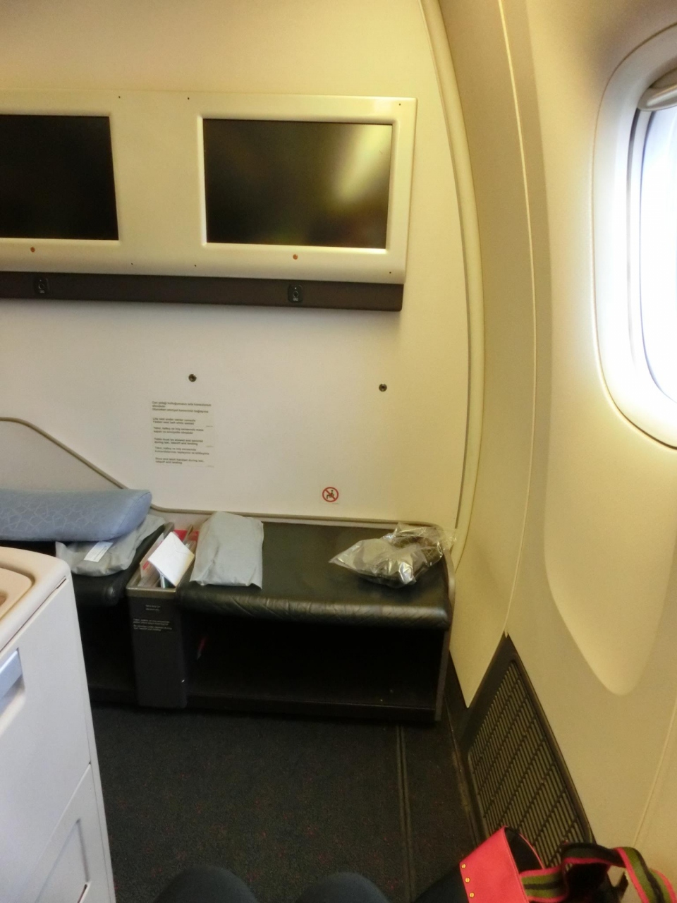 兎に角席が狭いです、前の方が食事時以外は背もたれを倒しっぱなしだったせいもあるかと思いますが、最近乗った航空会社の中ではダントツの狭さで、通路側席だったのにも関わらず、立つのが大変でした、