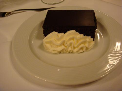 デザートはザッハトルテでした、翌日ホテルザッハーのトルテを食べるつもりだったので、味の比較の為に食べてみました、ここは生クリームが甘いので、