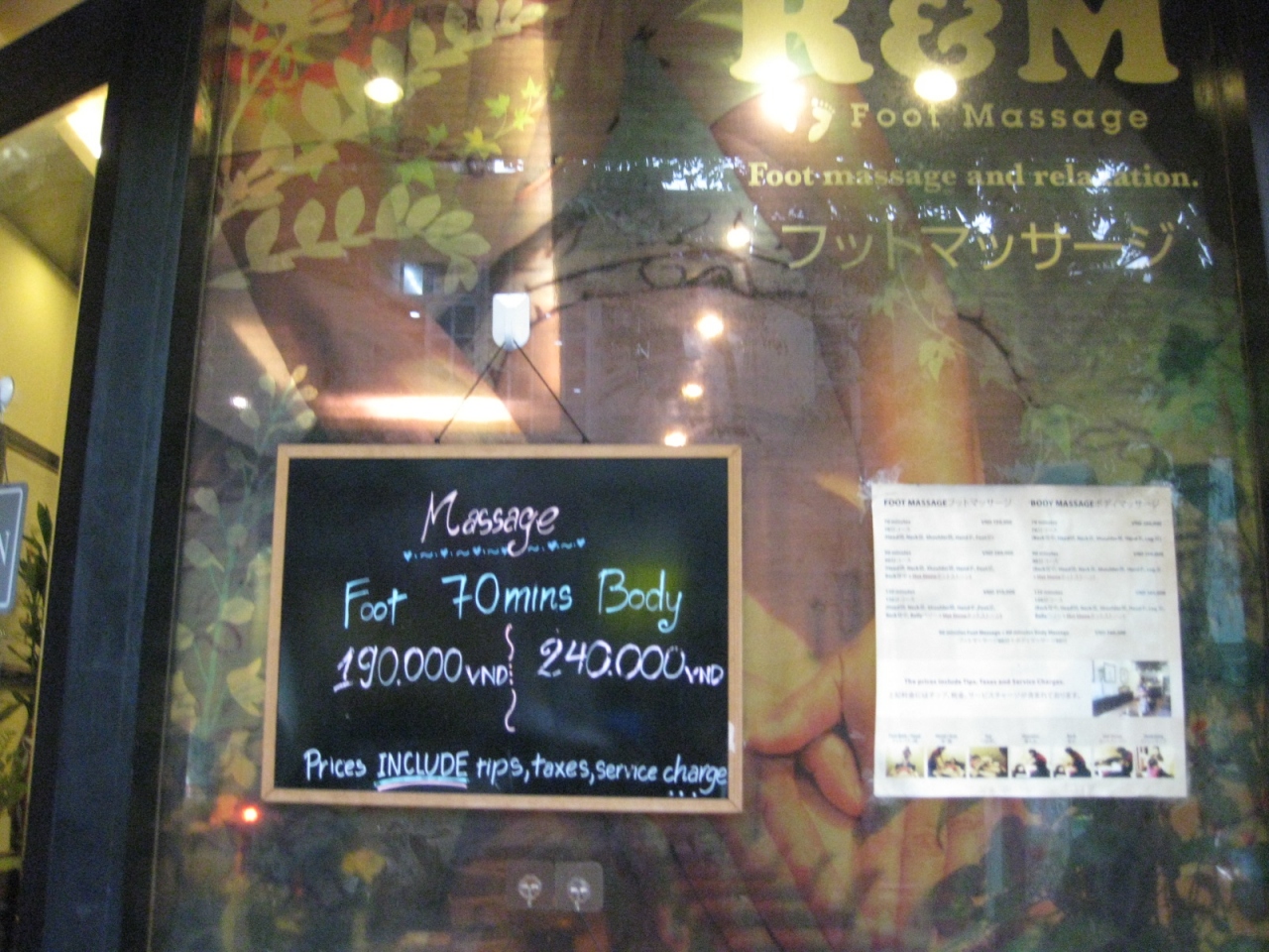 足マッサージ70分で1.9万ドン(約1000円)をオーダー。