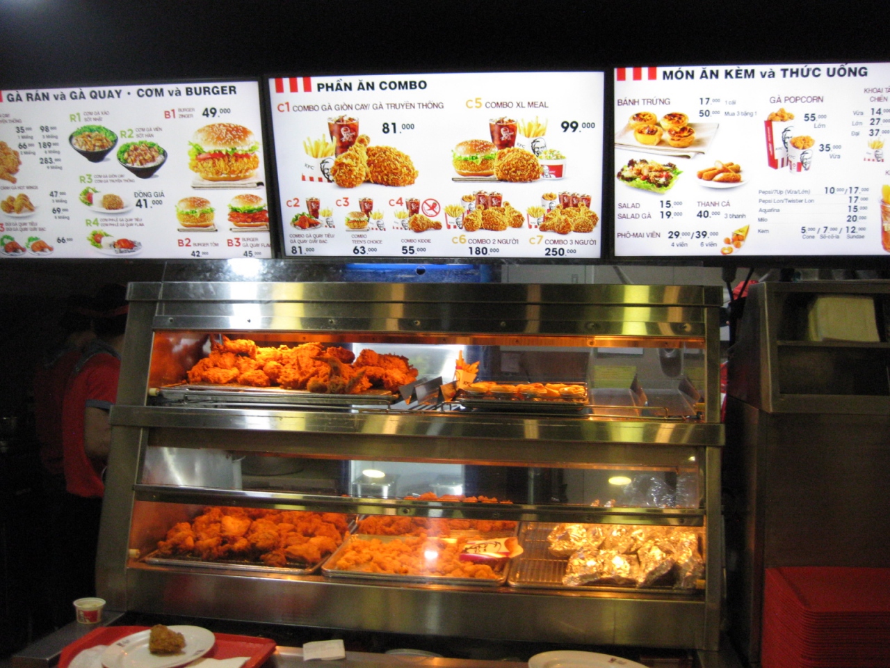 チキンフィレサンド、チキン1コ、ポテト、コールスロー、コーラのセットが500円程でした。