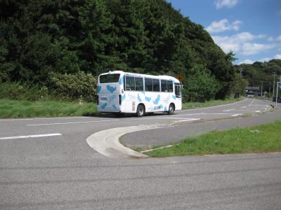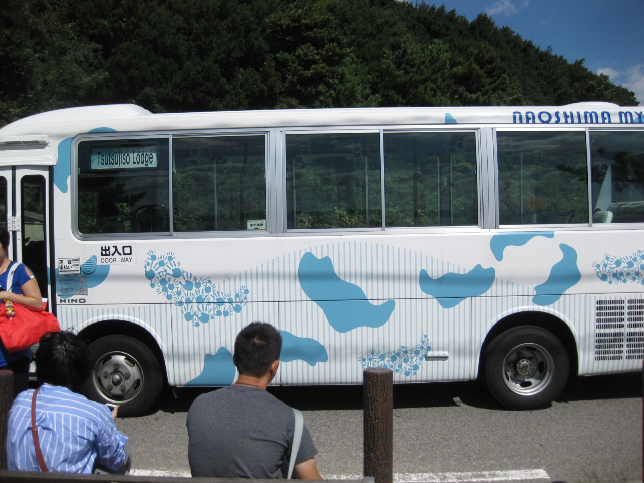 直島の宮浦港から100円巡回バス(町営バスすなお君号)に乗りつつじ荘で下車。