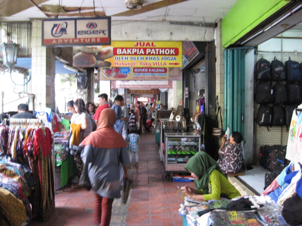 壁つたいに土産物や軽食の店が軒を連ねており、