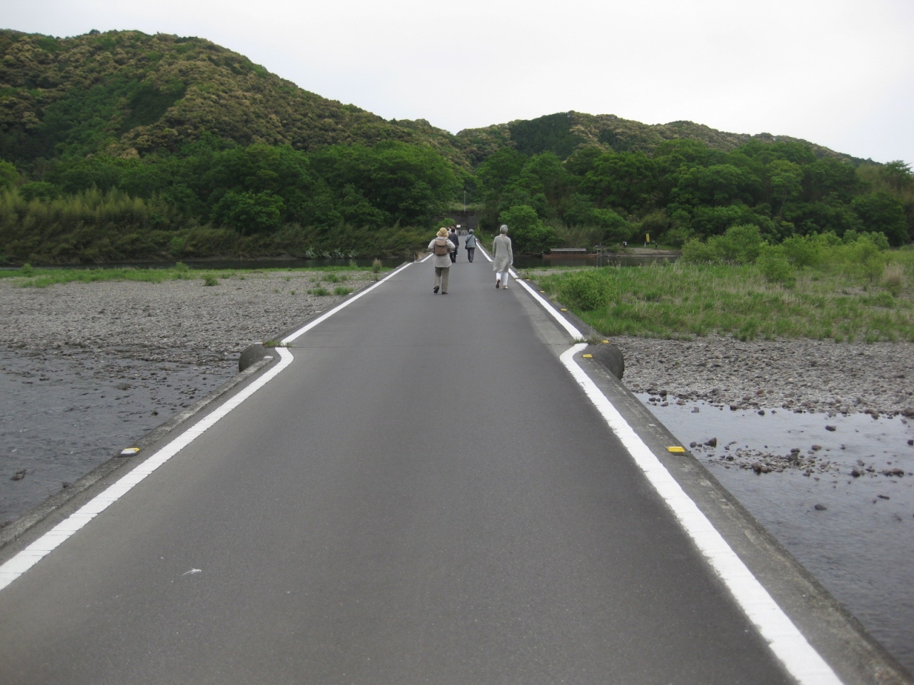 四万十川下流に人目を引くあざやかな赤い橋が架かっています。