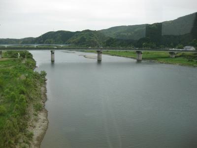 土佐くろしお鉄道に乗車し、車窓から四万十川に架かる赤鉄橋を眺めました。