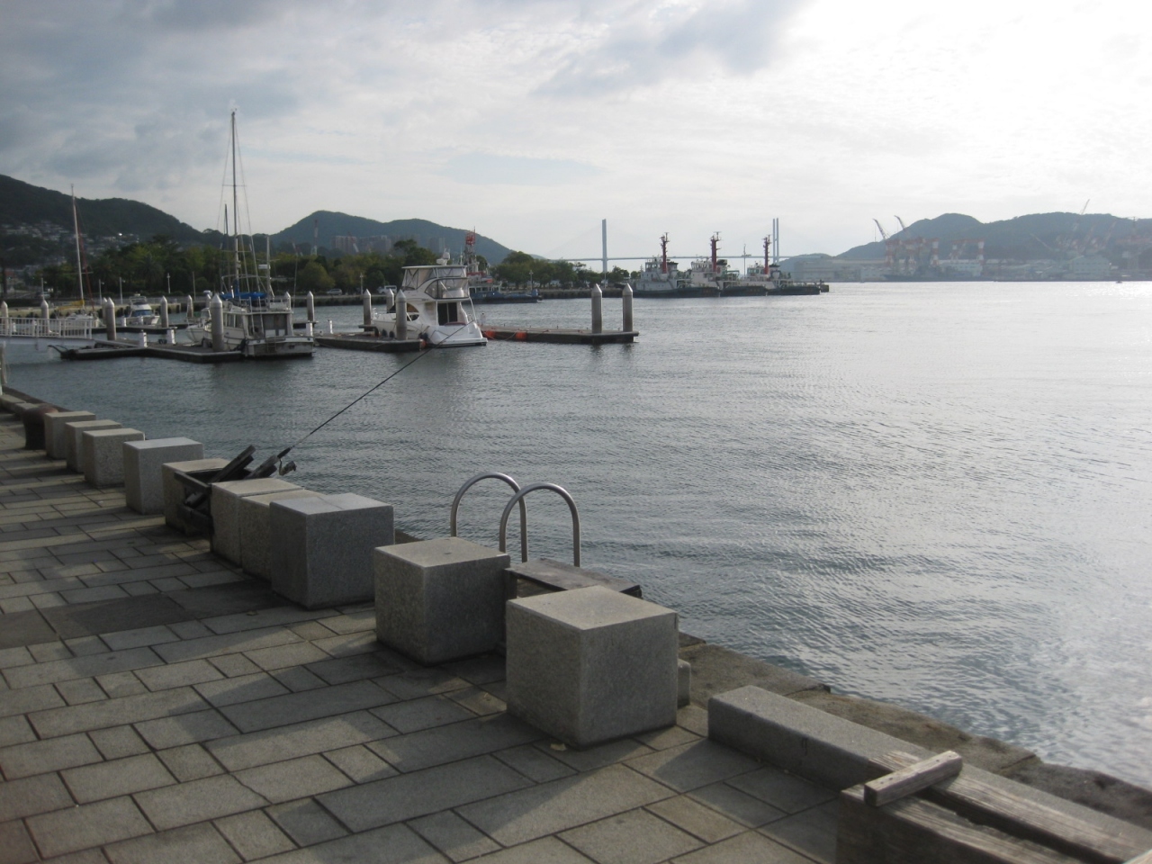 長崎駅の電停を降りて、高架橋の上を渡り、一番端の階段を下ります。