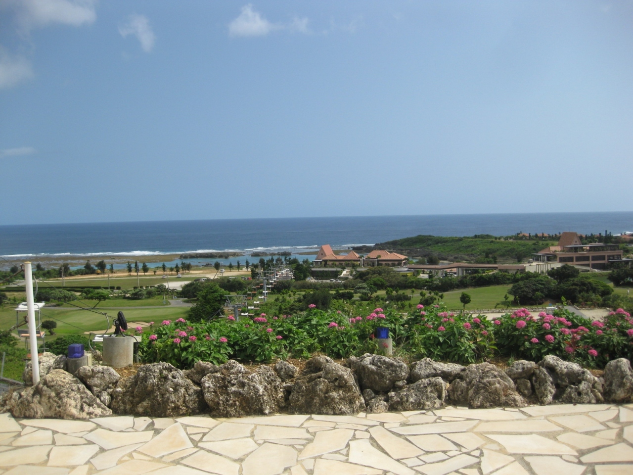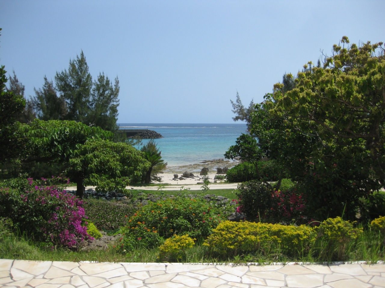 晴れていたので海の色が美しく、周囲の木々や花もきれいで爽快でした☆