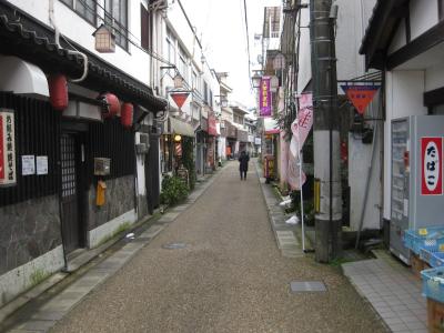 三朝温泉街のメインストリート温泉本通りに並ぶ店の数々。