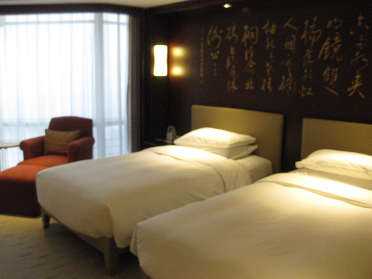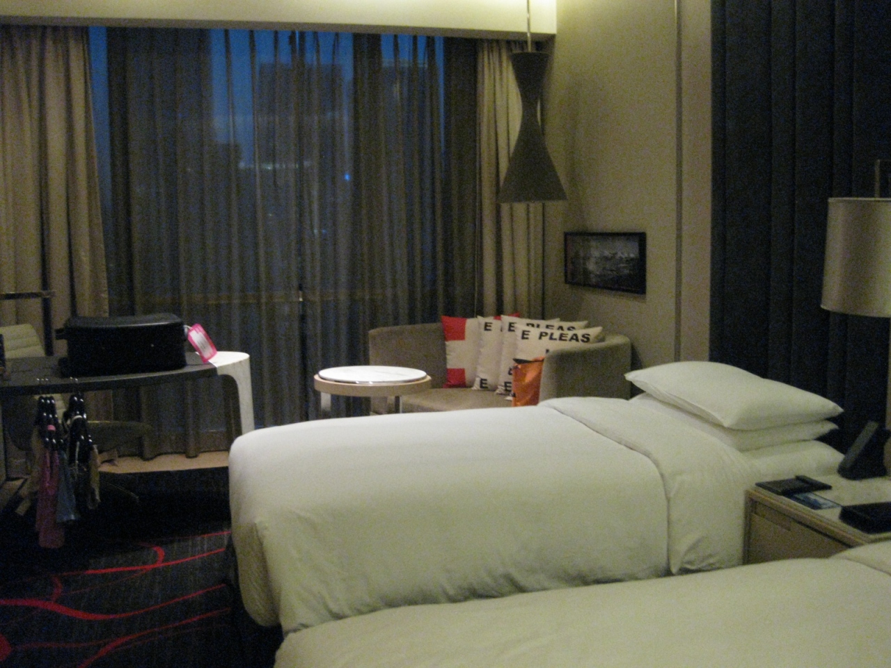 部屋に入った瞬間、暗い感じがしましたが、絨毯の模様のせいだとわかりました。