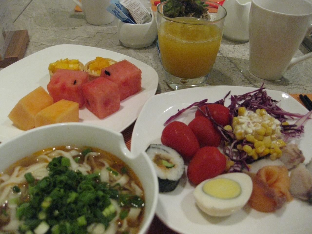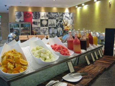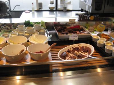 朝食は、デラックスホテルとは思えないほどの品ぞろえ。
