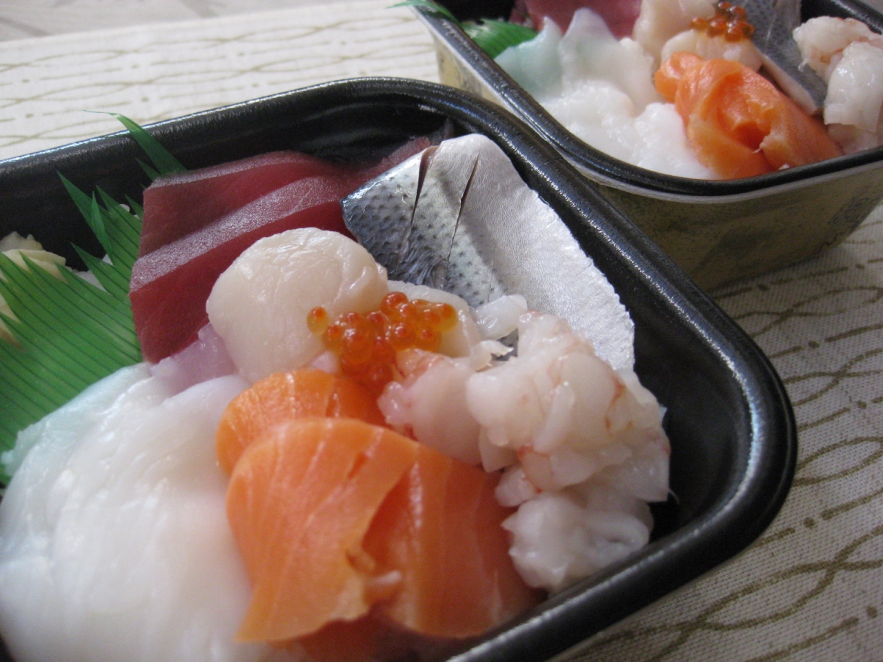 マグロ、サーモン、ホタテ、甘エビ、コハダ、イカなどのネタがのってます。