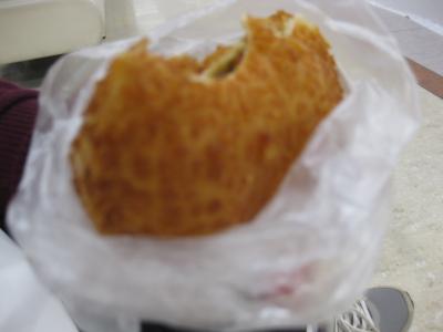 ちょうど、揚げたてのカレーパンが100円のセールをしてました。