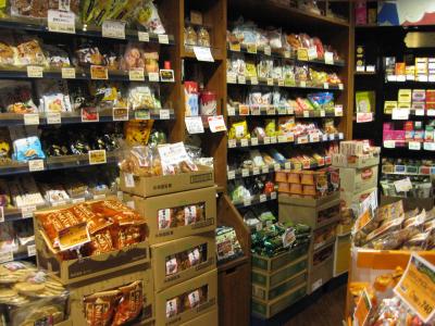 店頭でビーフジャーキーの試食がたくさん置いてありました。