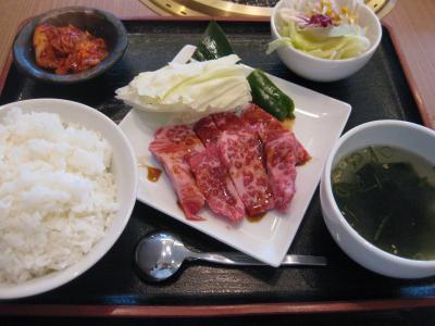 ご飯(おかわり自由)とわかめスープ、サラダ、キムチ、ドリンクバーが付きます。