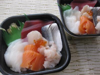 しらす丼、マグロ丼、サーモン丼など、どれも500円。