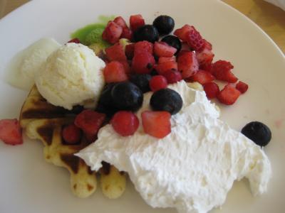 自分で焼くワッフルは自由にトッピングもできてGOOD!