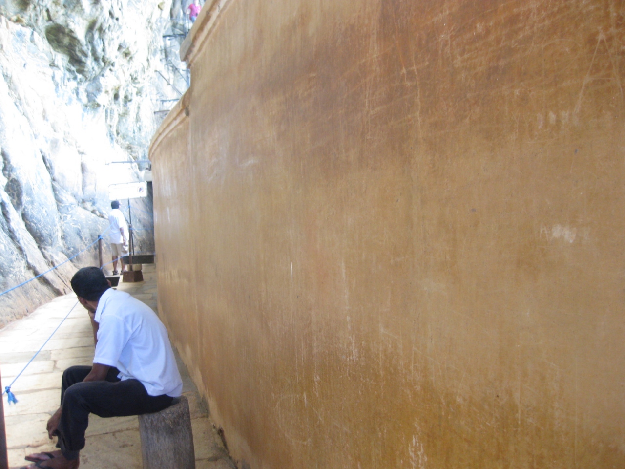 岩肌の壁にミツロウを塗り、ピカピカに磨かれているためミラーウォールと呼ばれているらしい。