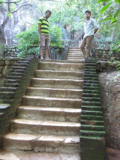 シギリヤロックに登るとき、手をかしてくれる男が何人も待機しています。