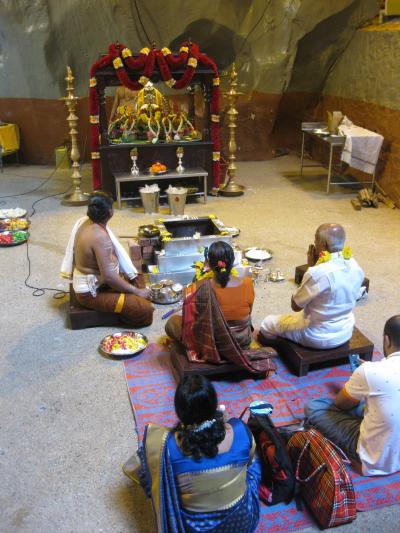 洞窟の中には厳かなムードでヒンドゥー教寺院がひっそりと存在する。